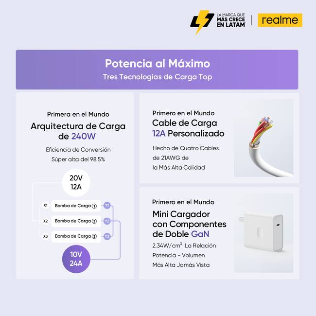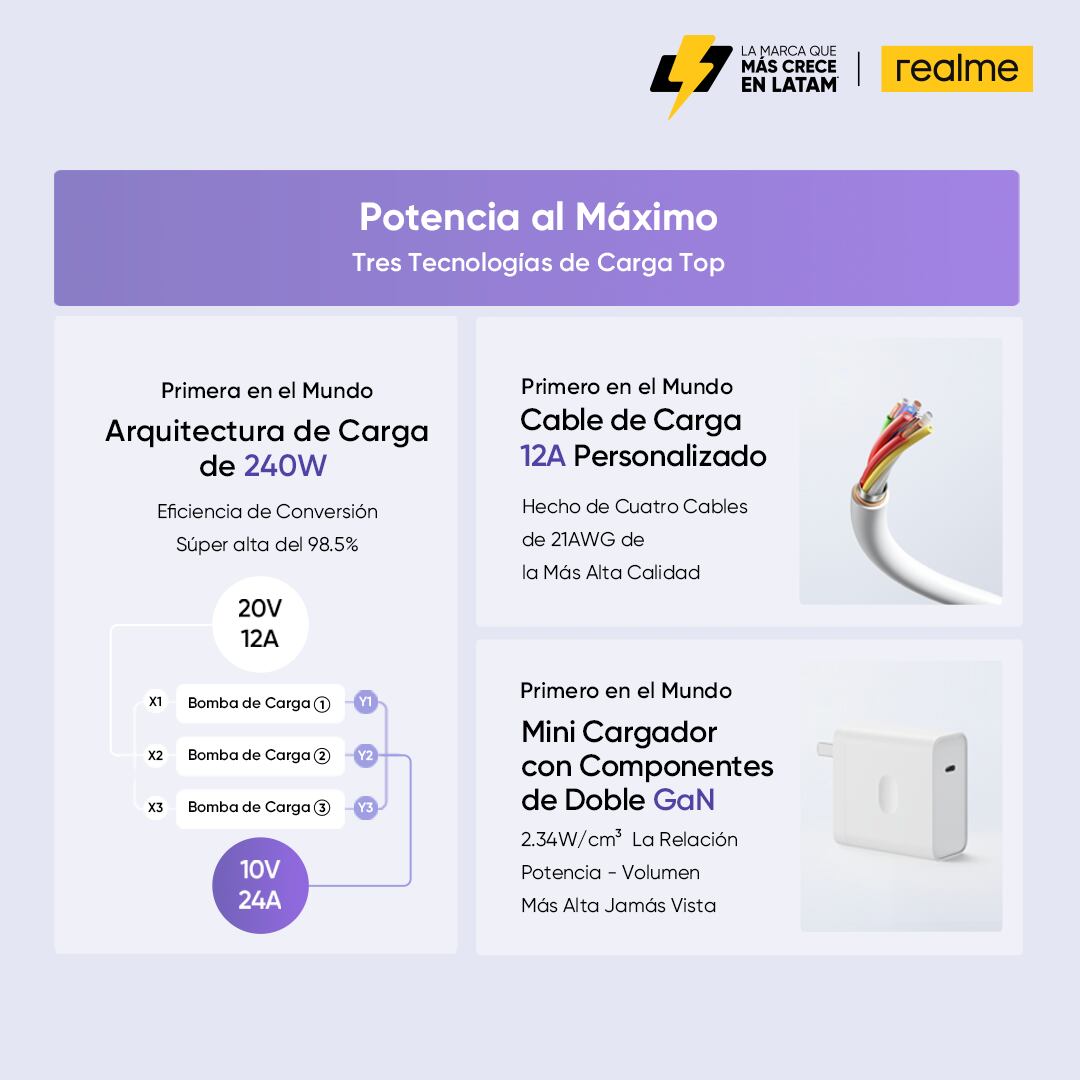 La carga rápida de 240W ofrecerá diversas soluciones que garantizaran seguridad, rapidez y potencia.