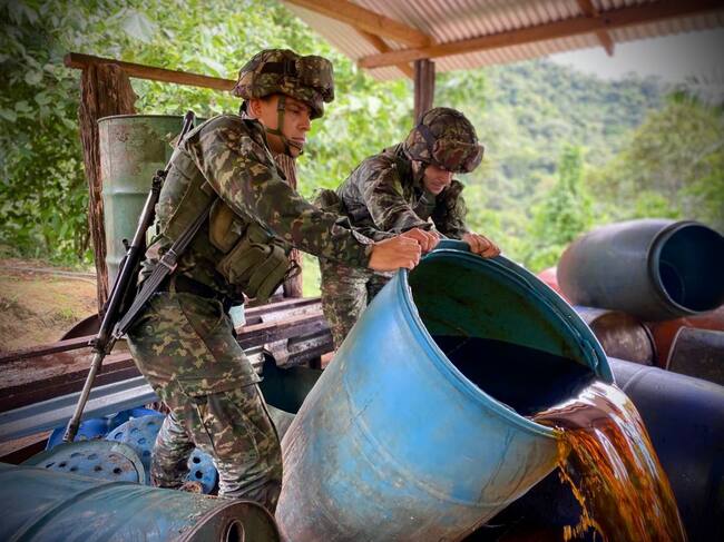 El Ejército desmanteló seis laboratorios ilegales para el procesamiento de pasta base de coca en diferentes veredas del municipio de Vista Hermosa, Meta.